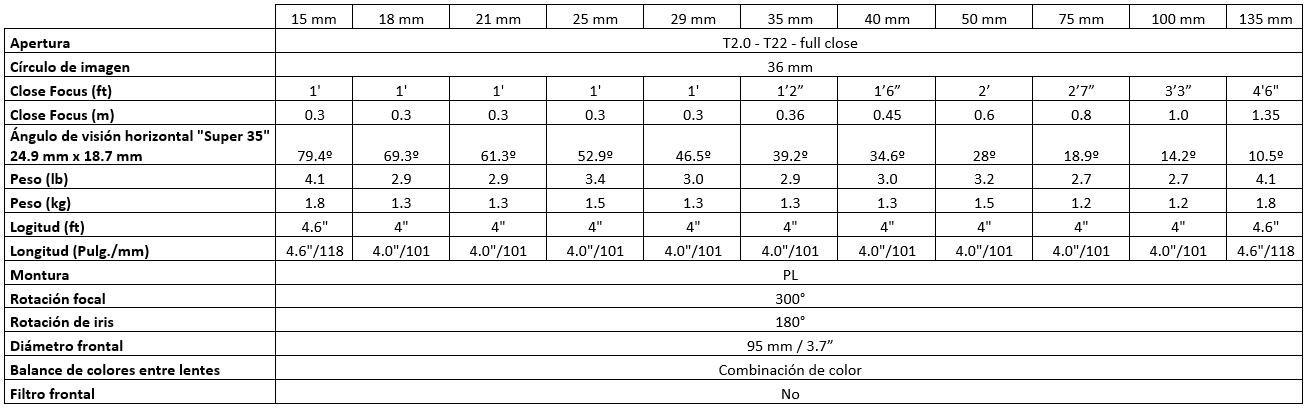Especificaciones