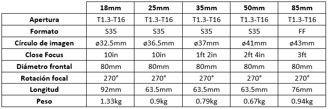 Lente Zeiss High Speed MKII 18, 25, 35, 50, 65, 85 mm
