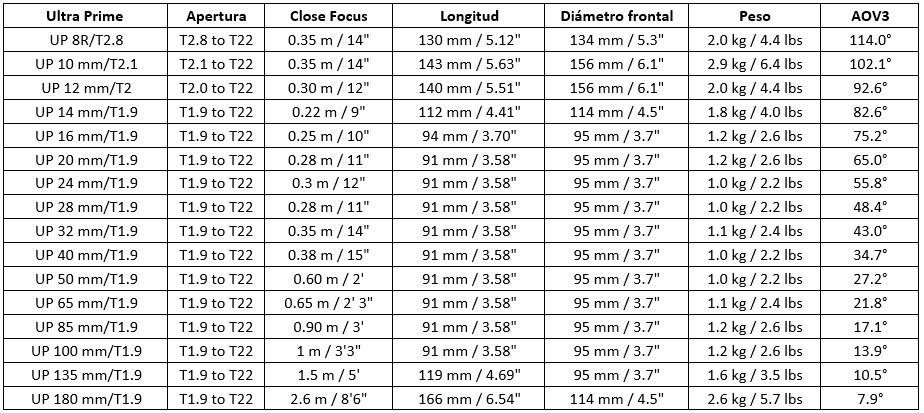 Lente Zeiss/Arri Ultra Prime 20, 24, 32, 50, 85 mm